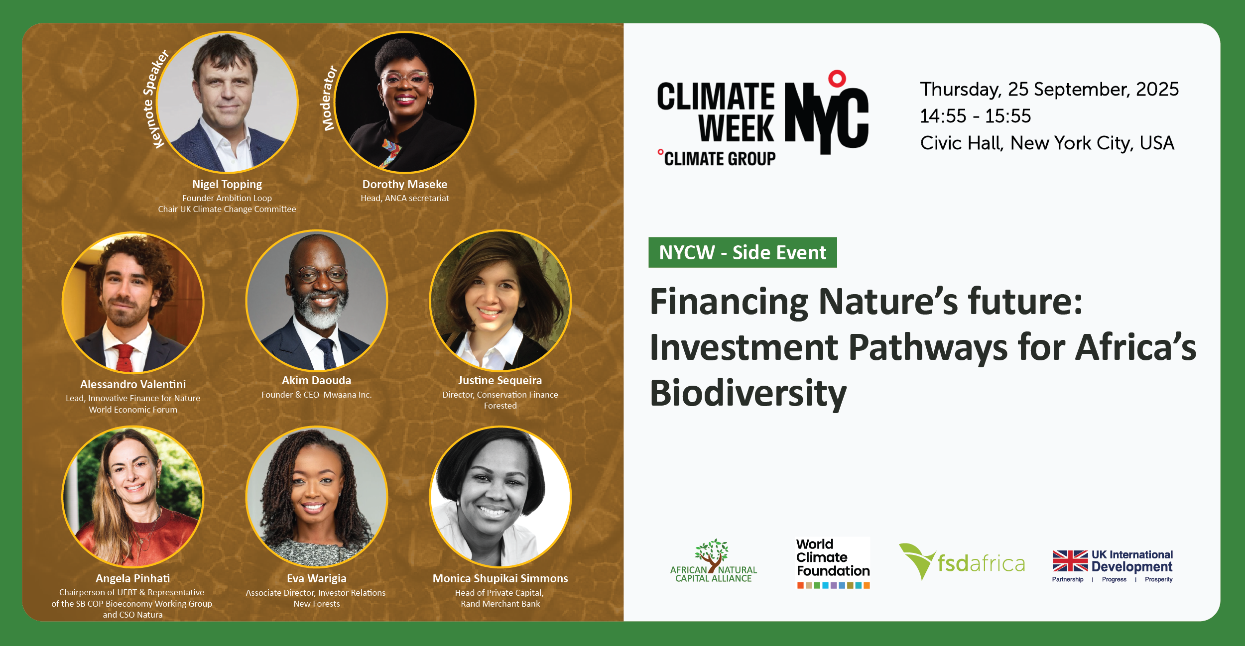 We will be hosting a high-level roundtable during the World Biodiversity Summit at New York Climate Week. Event Title: Financing Nature’s Future: Investment Pathways for Africa’s Biodiversity Date & Time: Thursday, 25 September | 14:55 – 16:25 (EST) Venue: Civic Hall, New York City, USA About the Event Africa’s ecosystems are among the richest and…